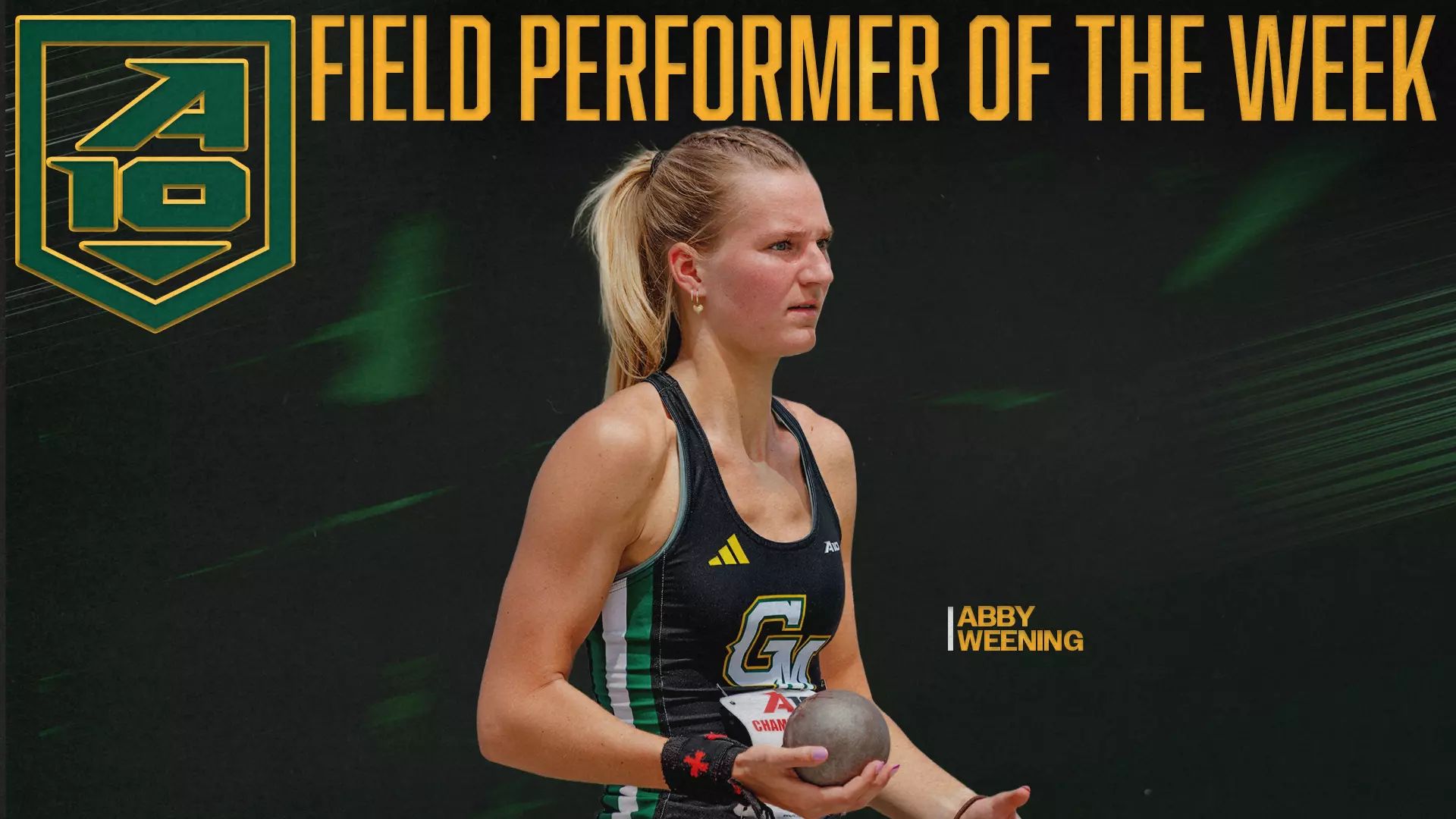 🔼 Top Patriot. Track & field’s Abby Weening was named the A-10 Field Performer of the Week after she won the heptathlon at the Duke Invitational with a personal-best score of 5,622 points, ranking first in the Atlantic 10 and eighth nationally.